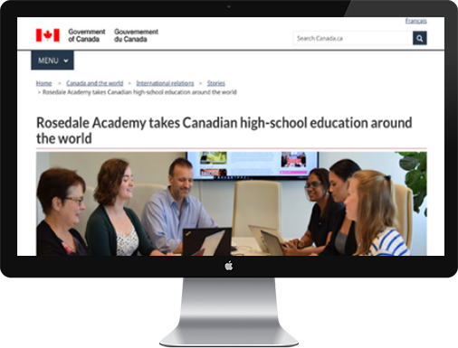 2. 2019年,代表加拿大政府最高部门的加拿大全球事务部(Global Affairs Canada), 在加拿大政府官方网站上发表关于“罗斯德公学引领加拿大高中教育走向世界”的文章,受到广泛关注。罗斯德是近十年来唯一被报道的加拿大非公立教育机构。